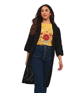 Joe Browns Damski kwiatowy detal długi zawijany wokół Pointelle kardigan sweter, czarny, 8, Czarny, 34