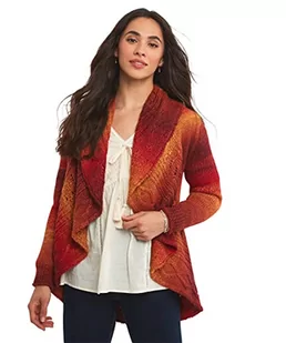 Joe Browns Damski sweter rozpinany z dzianiny z efektem płomienia i wzornictwa, pomarańczowy Multi, 14, Pomarańczowy wiele, 40