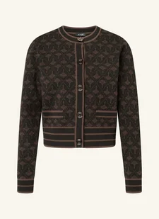 Gładki ścieg. Prosty krój. Głęboki okrągły dekolt. Zapięcie na guziki. Prążkowane ściągacze przy rękawach i rąbku. Nadruk na całej powierzchni. Materiał gładki w dotyku