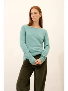 Kaszmirowy sweter "Grace" w kolorze turkusowym - czysty kaszmir - dekolt: łódka - zrolowany brzeg: dolny, zakończenia rękawów, dekolt - krój: wąski - look: jednokolorowy Uwaga: