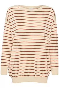 Kaffe damski sweter w paski sweter z długim rękawem sweter, Sand Dollar/Brown Stripe