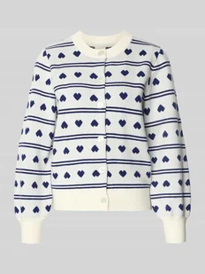 Kardigan damski ICHI;Imitacja dzianiny;Krój regular fit;Model ‘Brielle’;Wyhaftowany motywem na całej powierzchni;Listwa guzikowa na całej długości;Okrągły dekolt;Elastyczne brzegi;Długość tyłu w rozmiarze S: 57 cm;Długość rękawa w rozmiarze S: 60 cm