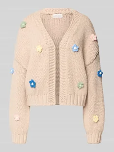 Kardigan rozpinany o kroju oversized z kwiatowym, ozdobnym obszyciem