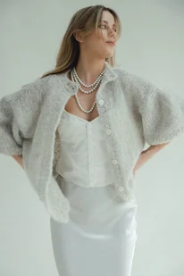 Kardigany z krótkim rękawem to nasza miłość na wiosne i lato! Sweterek został wydziergany.z mięciutkiej i delikatnej alpaki z jedwabiem, zapinany pod szyję na perłowe guziki. Produkt robiony na zamówien ...