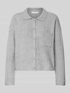 Kardigan damski OPUS;Mieszanka bawełny z dodatkiem wełny;Krój regular fit;Model ‘Dinkine’;Wykładany kołnierz;Kieszeń na piersi;Listwa guzikowa;Długość tyłu w rozmiarze 36: 50 cm;Długość rękawa w rozmiarze 36: 49 cm