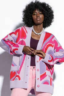 Kolorowy bawełniany kardigan serca F1811 Fiolet