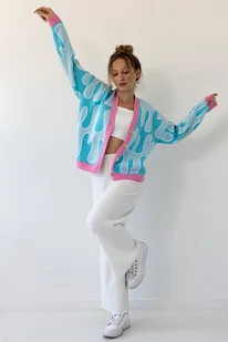 Kolorowy bawełniany kardigan zapinany F2026 niebieski