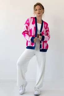 Kolorowy bawełniany kardigan zapinany F2026 pink