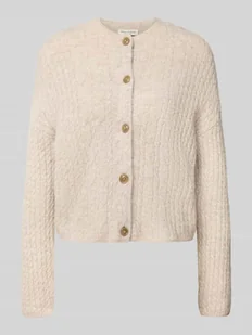 Kurtka z dzianiny damska Marc O'Polo;Efekt: Melanż;Krój: Krój regular fit;Zapięcie: jednorzędowa listwa guzikowa;Wzór: Wzór w warkocze;Dekolt: zabudowany;Zakończenia rękawów: prążkowane;Wykończenie materiału: Dzianina
