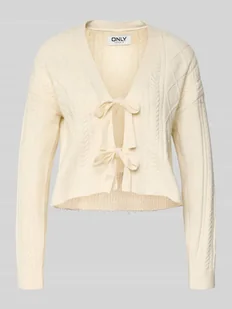 Kurtka z dzianiny damska Only;Model ‘Fia’;Efekt: jednolity kolor;Krój: Krój regular fit ;Zapięcie: Kokardy;Wzór: Ścieg warkoczowy;Rękaw: