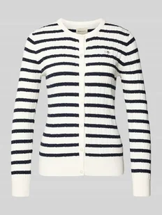 Kurtka z dzianiny damska Gant;Elastyczna bawełna mieszana;Dopasowany krój;Ścieg warkoczowy;Okrągły dekolt;Listwa guzikowa;Prążkowane wykończenia;Długość tyłu w rozmiarze S: 60 cm;Długość rękawa w rozmiarze S: 61 cm