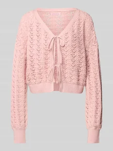Kurtka damska z dzianiny GUESS;Czysta bawełna;Luźny krój;Haft angielski;Sznurowanie;Prążkowane wykończenia;Dekolt w serek;Długość tyłu w rozmiarze S: 42 cm;Długość rękawa w rozmiarze S: 51 cm