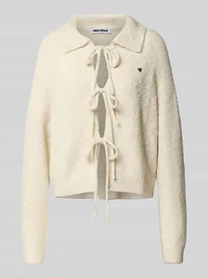Kurtka z dzianiny damska Review;Mieszanka materiałów z dodatkiem wełny;Luźny krój;Wykładany kołnierz;Sznurowanie;Detal z logo;Długość tyłu w rozmiarze S: 52 cm;Długość rękawa w rozmiarze S: 58 cm