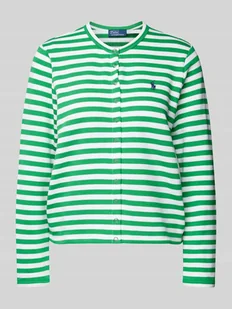 Kurtka z dzianiny damska Polo Ralph Lauren;Mieszanka bawełny;Prosty krój;Model ‘TERRY’;Wyhaftowane logo;Prążkowane wykończenia;Okrągły dekolt;Listwa z zatrzaskami;Długość tyłu w rozmiarze S: 54 cm;Długość rękawa w rozmiarze S: 63 cm