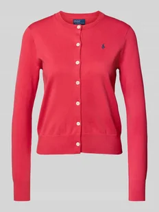 Kurtka z dzianiny damska Polo Ralph Lauren;Czysta bawełna;Krój regular fit;Prążkowane wykończenia;Okrągły dekolt;Listwa guzikowa;Wyhaftowane logo;Długość tyłu w rozmiarze S: 52 cm;Długość rękawa w rozmiarze S: 54 cm
