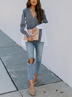 Trendyol Damski design regularny standardowy kardigan z dekoltem w serek, Szary, L