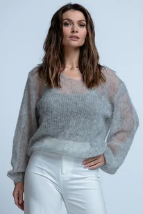 Lekki sweter mgiełka z dekoltem w serek z wełny alpaki F1853 Szary