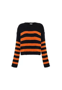 Libbi Damski sweter w paski czarny pomarańczowy M/L, czarny pomarańczowy, M