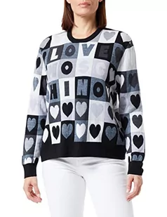 Love Moschino Damski sweter z długim rękawem z serduszkami, Multicuore/Grey, 40