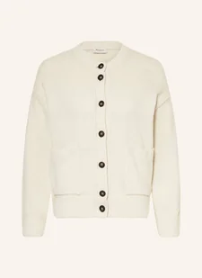 Gładki ścieg. Prosty krój. Prążkowany okrągły dekolt. Zapięcie na guziki. Zachodzące ramiona. Nakładane kieszenie. Prążkowane ściągacze przy rękawach i rąbku. Flaga marki. Z wełną i bawełną