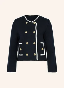 Gładki ścieg. Prosty krój. Okrągły dekolt. Dwurzędówka z zapięciem na osiem guzików. Zapięcie na zatrzaski. Kieszenie z wypustką z zapięciem na zatrzask. Strukturalne paski na rękawach i z tyłu. Kontrastowe detale. Z wełną