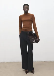 MANGO - Dopasowany sweter z półgolfem karmelowy brąz - S - Kobieta