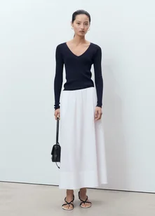 MANGO - Prążkowany sweter z dekoltem w szpic ciemnogranatowy - L - Kobieta