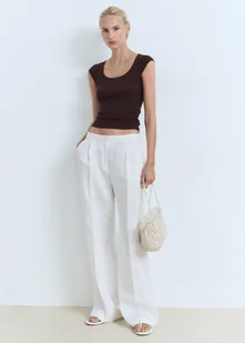 MANGO - Prążkowany sweter z krótkim rękawem czekoladowy - L - Kobieta