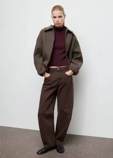 MANGO - Sweter z prążkowanego materiału z pofalowanym wykończeniem winny - XL - Kobieta