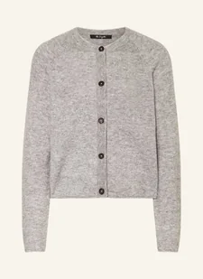 Drobna dzianina. Prosty krój. Okrągły dekolt. Zapięcie na guziki. Rękawy raglanowe. Rolowane zakończenia