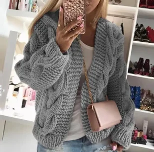 Modny ażurowy sweter damski w jednolitym kolorze - Szary L