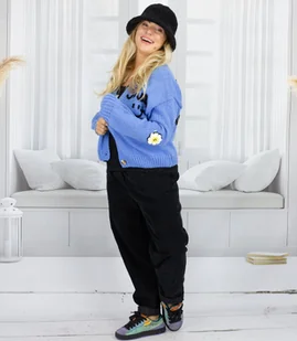 kobiecy kardigan rozpinany na guziki swobodny fason o długości do bioder głęboki dekolt w serek podkreślający szyję miękka dzianina z akrylu, wełny, bawełny i wiskozy trójwymiarowe kwiatowe aplikacje i napis „Smile everyday” idealny na co dzień, do pracy i na spotkania Modny kardigan z naszywkami – must have w kobiecej szafie Ten stylowy kardigan zapinany na guziki łączy modny wygląd z maksymalną wygodą. Swobodny fason do bioder delikatnie otula sylwetkę i pozwala ukryć drobne mankamenty figury, świetnie komponując się zarówno z jeansami, jak i eleganckimi spodniami czy spódnicą. Głęboki dekolt w serek subtelnie wysmukla szyję oraz pięknie eksponuje T‑shirt, top lub koszulę. Kardigan wykonany jest z przyjemnej w dotyku dzianiny z dodatkiem wełny, bawełny i wiskozy, dzięki czemu zapewnia ciepło i komfort noszenia przez cały dzień, bez nieprzyjemnego drapania. O jego wyjątkowości decydują trójwymiarowe kwiatowe aplikacje oraz optymistyczny napis „Smile everyday”, które nadają stylizacji młodzieżowego, radosnego charakteru.
