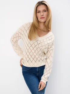 aleva Damski sweter z dzianiny 19019439-AL04, beżowy wełniany biały, M/L, Beżowy biały wełna, M-L