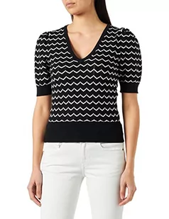 Morgan damski sweter z krótkim rękawem z nadrukiem szewronu Must Black TS, Czarny/Off White, S