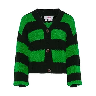 myMo Damski kardigan w paski z długim rękawem z dekoltem w serek akryl czarny zielony rozmiar M/L, czarny, zielony, M