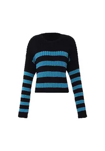 myMo Damski sweter w paski czarny turkusowy M/L, czarny turkusowy, M