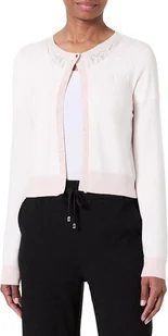 NAF NAF RÓŻOWY SWETER DAMSKI Z AŻUROWYM DEKOLTEM I GUZIKIEM M J9A