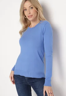 Niebieski Sweter Klasyczny z Miękkiej Dzianiny Helentia