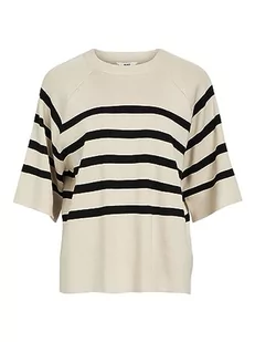Object Damski sweter z dzianiny w paski, Sandshell/Stripes:black, XS