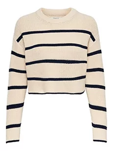 ONLY Damski sweter Onlmalavi L/S Cropped KNT z dzianiny, Kamień/paski: granatowy blezer, M