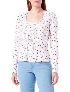 ONLY Women's ONLLINAS Kardigan/Singlet CS JRS koszulka z długim rękawem, Cloud Dancer/AOP:Cherry, XS, Cloud Dancer/Aop: wiśniowy, XS