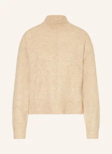 Gładki ścieg i dzianina prążkowana. Prosty krój. Stójka. Zachodzące ramiona. Prążkowane ściągacze przy rękawach i rąbku. Boczne rozcięcia.