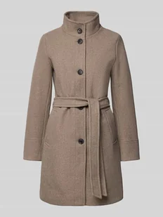 Płaszcz damski B. Young;Taliowany krój;Stójka;Model ‘Cilia’;Listwa guzikowa;Wiązany pasek;Wpuszczane kieszenie;Długość tyłu w rozmiarze 36: 86 cm;Szerokość ramion w rozmiarze 36: 39 cm;Szerokość klatki piersiowej w rozmiarze 36: 41 cm;Długość rękawa w rozmiarze 36: