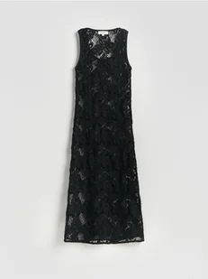 Reserved - Ażurowa sukienka midi - czarny
