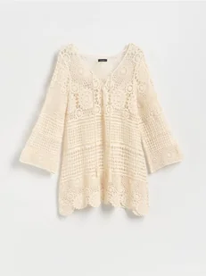 Reserved - Dzianinowa narzutka plażowa - kremowy
