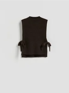 Reserved - Dzianinowy kołnierz z wiązaniem - ciemnobrązowy