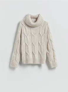 Golf o swobodnym kroju, wykonany z dzianiny z domieszką wełny.