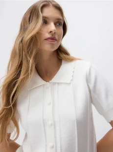 Reserved - Kardigan z kołnierzem - kremowy