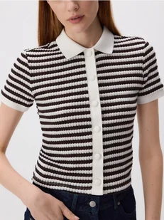 Sweter o prostym kroju, wykonany z bawełnianej dzianiny.