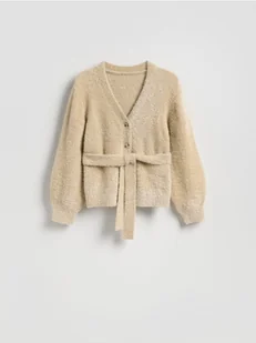 Reserved - Kardigan z metalizowaną nicią - kremowy